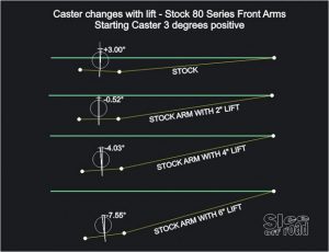Зная истинный угол кастера на Вашем автомобиле, можно определить высоту лифта подвески для правильного выбора префикса рычагов.